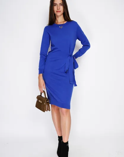 Robe en Cachemire & Soie col ras du cou avec ceinture royal