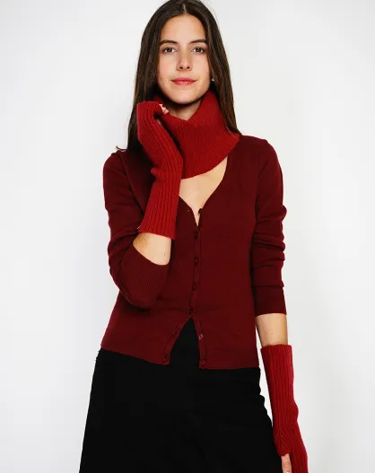 Mitaines en Cachemire mélangé à côtes ajusté 12 fils rouges