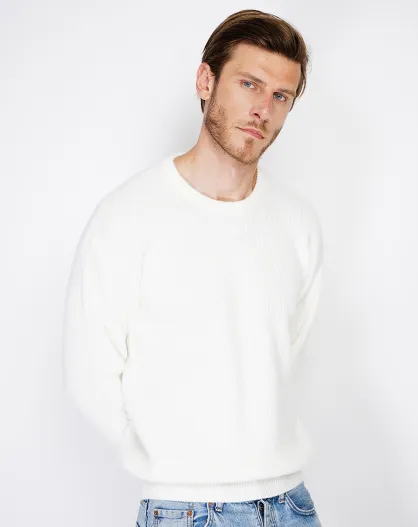Pull large en Cachemire mélangé ras du cou à côtes naturel