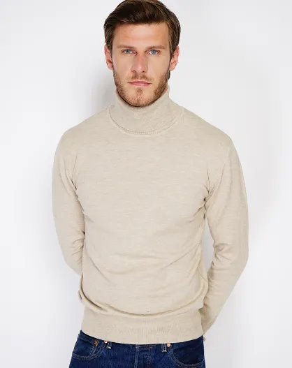 Pull en Cachemire mélangé col roulé camel