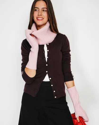 Tour de cou en Cachemire mélangé à côtes ajusté 12 fils rose