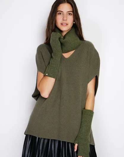 Tour de cou en Cachemire mélangé à côtes ajusté 12 fils vert
