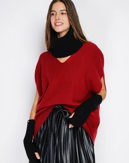 Mitaines en Cachemire mélangé à côtes ajusté 12 fils noires