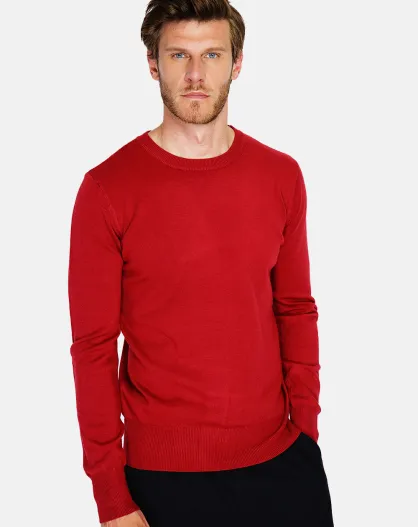 Pull en Cachemire mélangé col ras de cou tricotage en 3 fils rouge