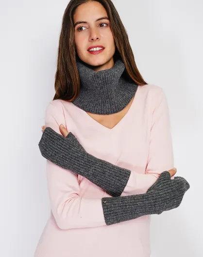 Mitaines en Cachemire mélangé à côtes ajusté 12 fils loup