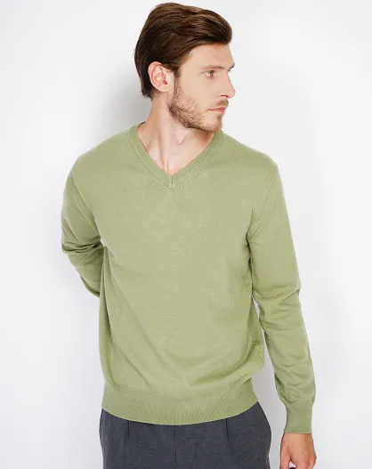 Pull en Cachemire & Soie col V 2 fils vert amande