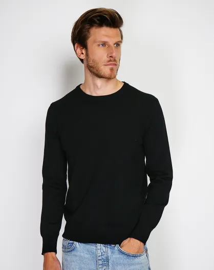 Pull en Cachemire & Soie mélangés col ras de cou 2 fils noir