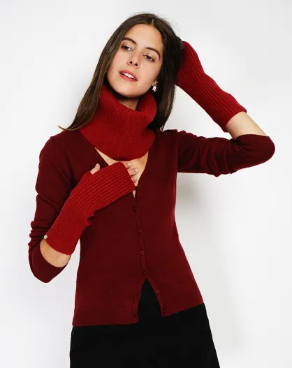 Tour de cou en Cachemire mélangé à côtes ajusté 12 fils rouge