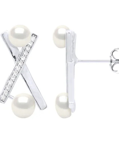 Boucles d'Oreilles Barettes en Argent Perle de Culture d'Eau Douce Bouton blanches