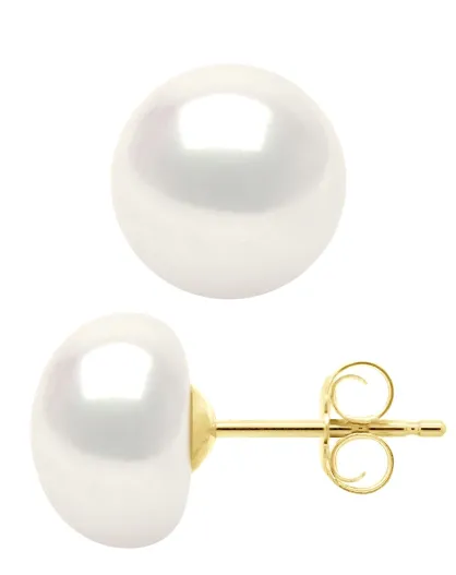 Boucles d'Oreilles en Or Jaune Perles de Culture d'Eau Douce boutons blanches