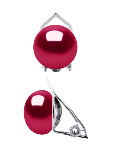 Boucles d'Oreilles en Argent Perles de Culture d'Eau Douce Boutons rouges