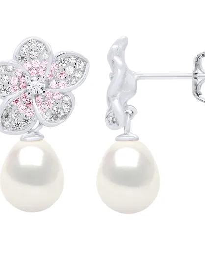 Boucles d'Oreilles en Argent Perles de Culture d'Eau Douce Poires blanches