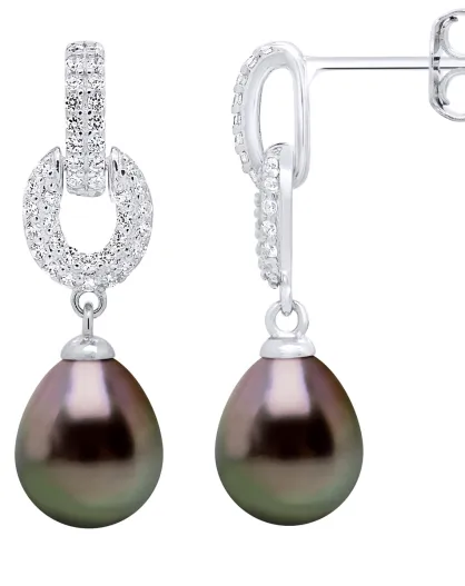 Boucles d'Oreilles Pendantes en Argent Perles de Culture de Tahiti peacock