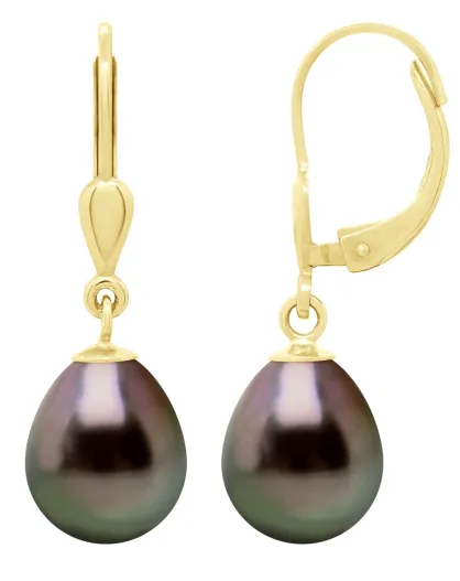 Boucles d'Oreilles en Or Jaune Perles de Culture de Tahiti Poires peacock
