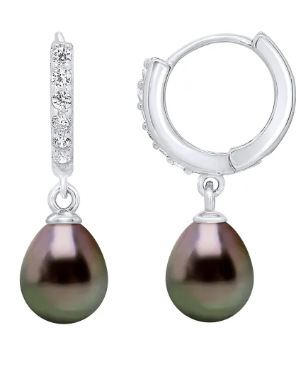 Boucles d'Oreilles Créoles en Argent Perles de Culture de Tahiti peacock