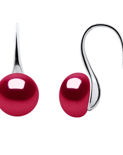 Boucles d'Oreilles en Argent Perles de Culture d'Eau Douce Boutons rouges