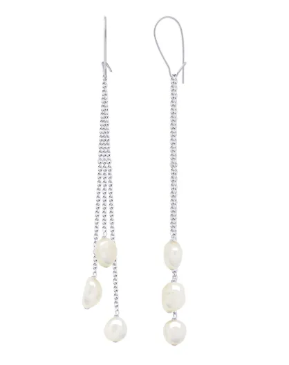 Boucles d'Oreilles en Or Blanc & 2x3 Perles de Culture d'Eau Douce blanches 6-7 mm