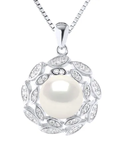 Collier Joaillerie en Argent Perle de Culture d'Eau Douce Bouton blanche