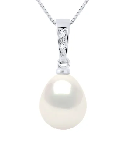 Pendentif Joaillerie en Or Blanc Diamants Perle de Culture d'Eau Douce Poire blanche