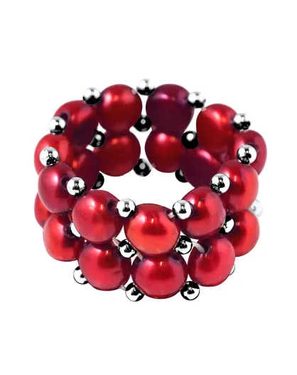 Bague 2 Rangs Perles d'Eau Douce rouges