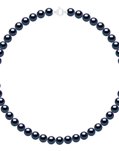 Collier Rang Princesse en Or Blanc Perles de Culture d'Eau Douce Rondes noires