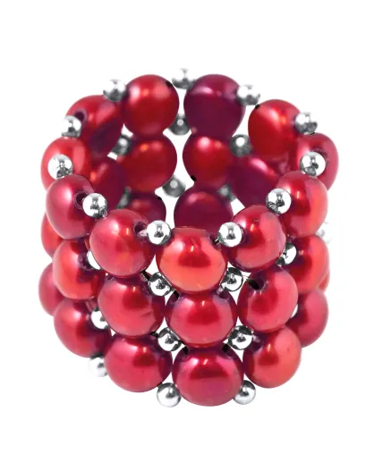 Bague 3 Rangs Perles d'Eau Douce rouges