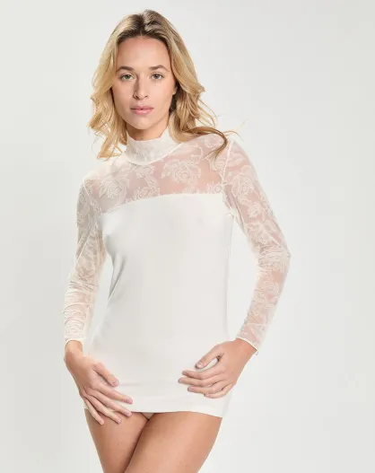 Top en micromodal dentelle manches longues naturel