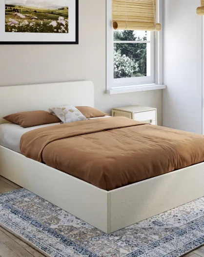 Lit coffre Louise en bouclette avec sommier et tête de lit arrondie 140x190cm