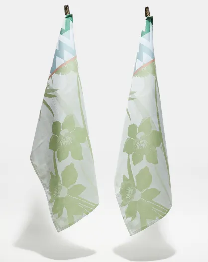 2 Torchons Jonquilles jaune vert - 50x70 cm