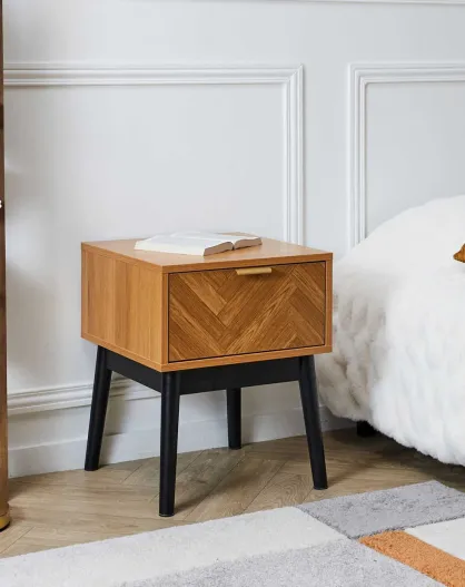 Chevet pin pieds métal charlie noir/bois - 51x40.5x54 cm