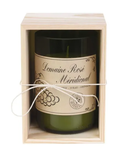 Bougie Parfumée Vin Coffret Bois vert/ beige - 7.5x12x7.5 cm
