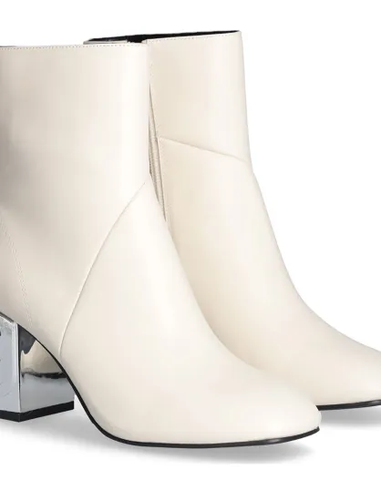 Bottines à Fermeture en Cuir de Veau ivoire