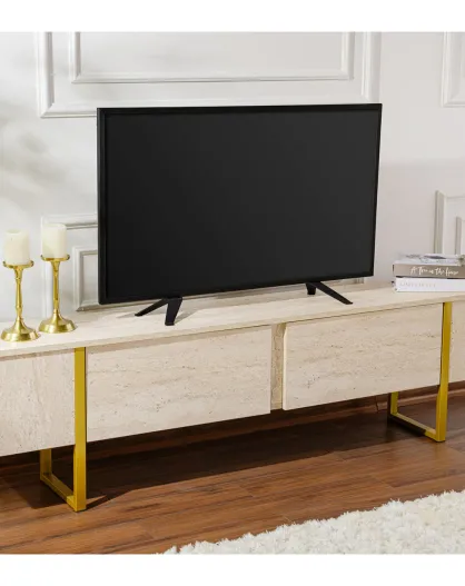 Meuble TV Serenity travertin/doré - 180x45x30 cm