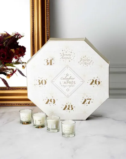 Calendrier de l'après 8 bougies parfumées blanc/doré/gris - 4.6x4.6x4.6 cm