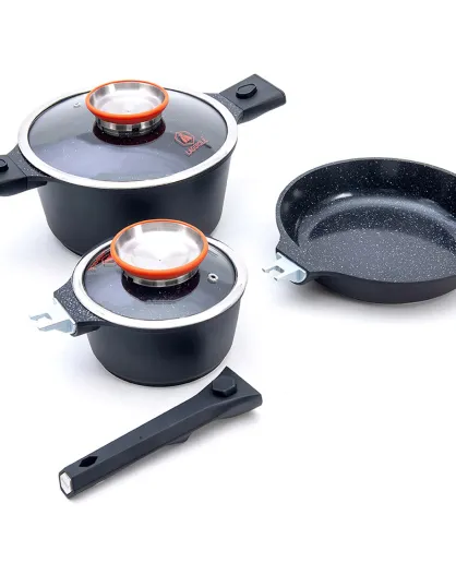Batterie de cuisine amovible astuces induction - 10 pièces gris