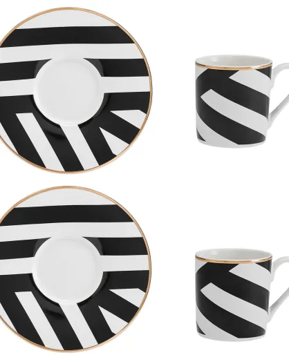 2 Tasses et soucoupes à expresso Mikasa Luxe noir/blanc - 100 ml