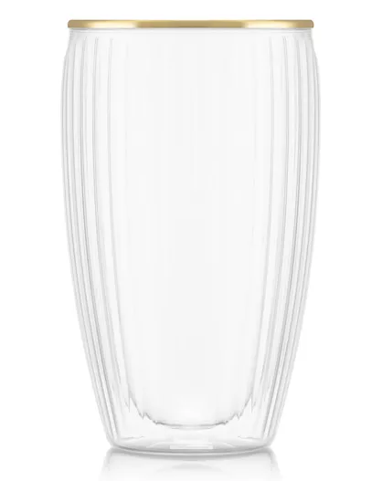 2 Verres double paroi striés bordure dorée - 0.45 L