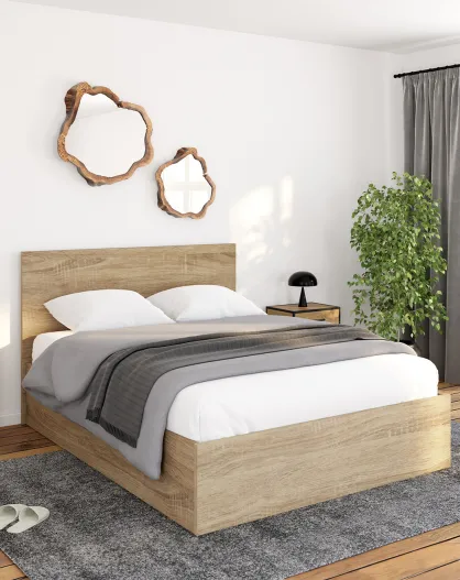 Lit coffre Sicilia avec sommier et tête de lit effet bois 140x190cm
