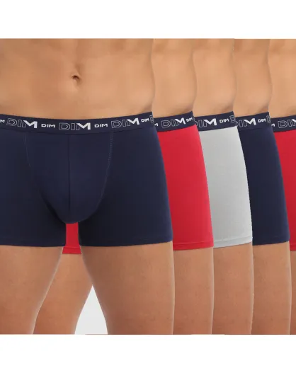 5 Boxers Coton Stretch bleu/gris/rouge