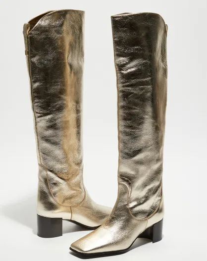 Bottes en Cuir Tessa champagne - Talon 5 cm