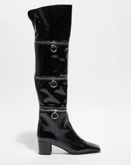 Bottes modulables en Cuir Billi à multiples zips noires - Talon 5 cm
