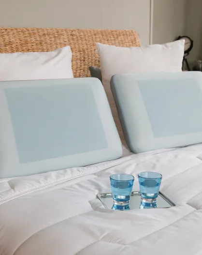 Oreiller ergonomique Viscoelastique Eté Hiver beige/bleu - 60x40 cm