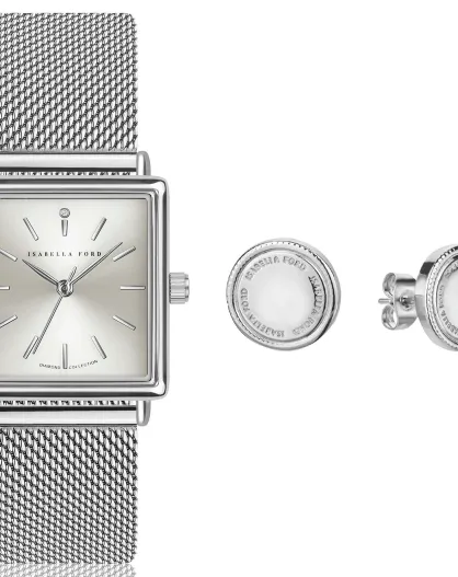 Montre Morgane en Acier & Diamant + Boucles d'oreilles argentées