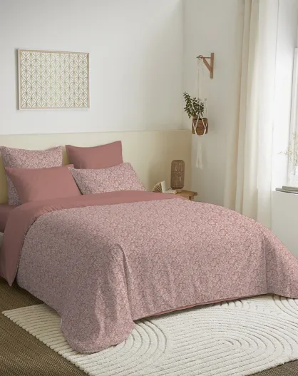 Pack Housse de couette imprimée + Drap housse + 4 Taies d'oreiller pêche - pour lit 160x200 cm