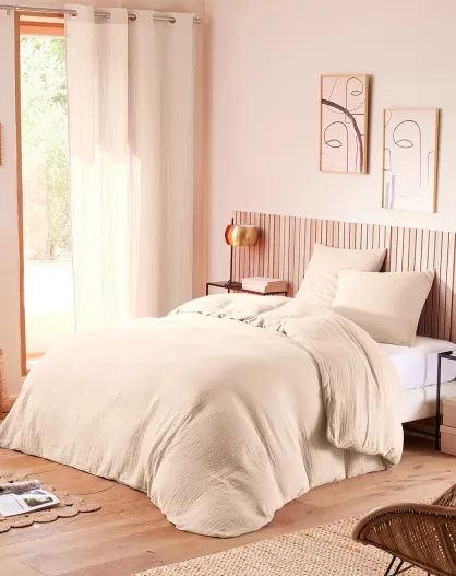 Pack Housse de couette + Drap housse + 2 Taies d'oreiller en Gaze de Coton naturel - pour lit 140x190 cm