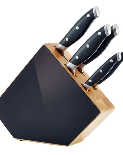 Bloc à couteaux avec aiguiseur intégré Porvoo bois - 10x13x24 cm