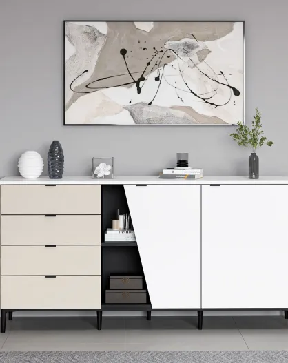 Buffet Yelena blanc/noir/grès - 180x90x45 cm