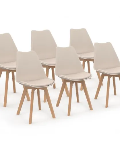 6 Chaises Nordia assise beige et pieds bois