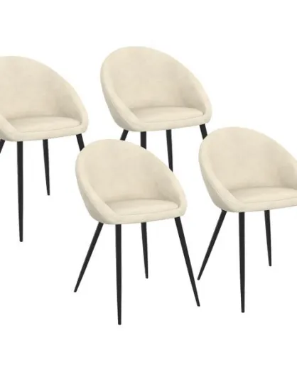 4 Chaises Dory en velours crème et pieds métal noirs - 54x52x77 cm