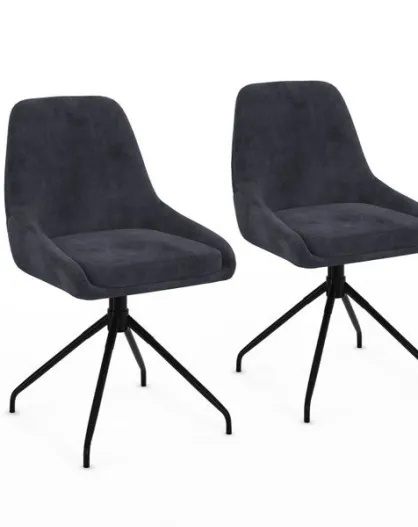 2 Chaises Olivia pivotantes en velours gris foncé et pieds métal noirs - 47,5x54x79 cm